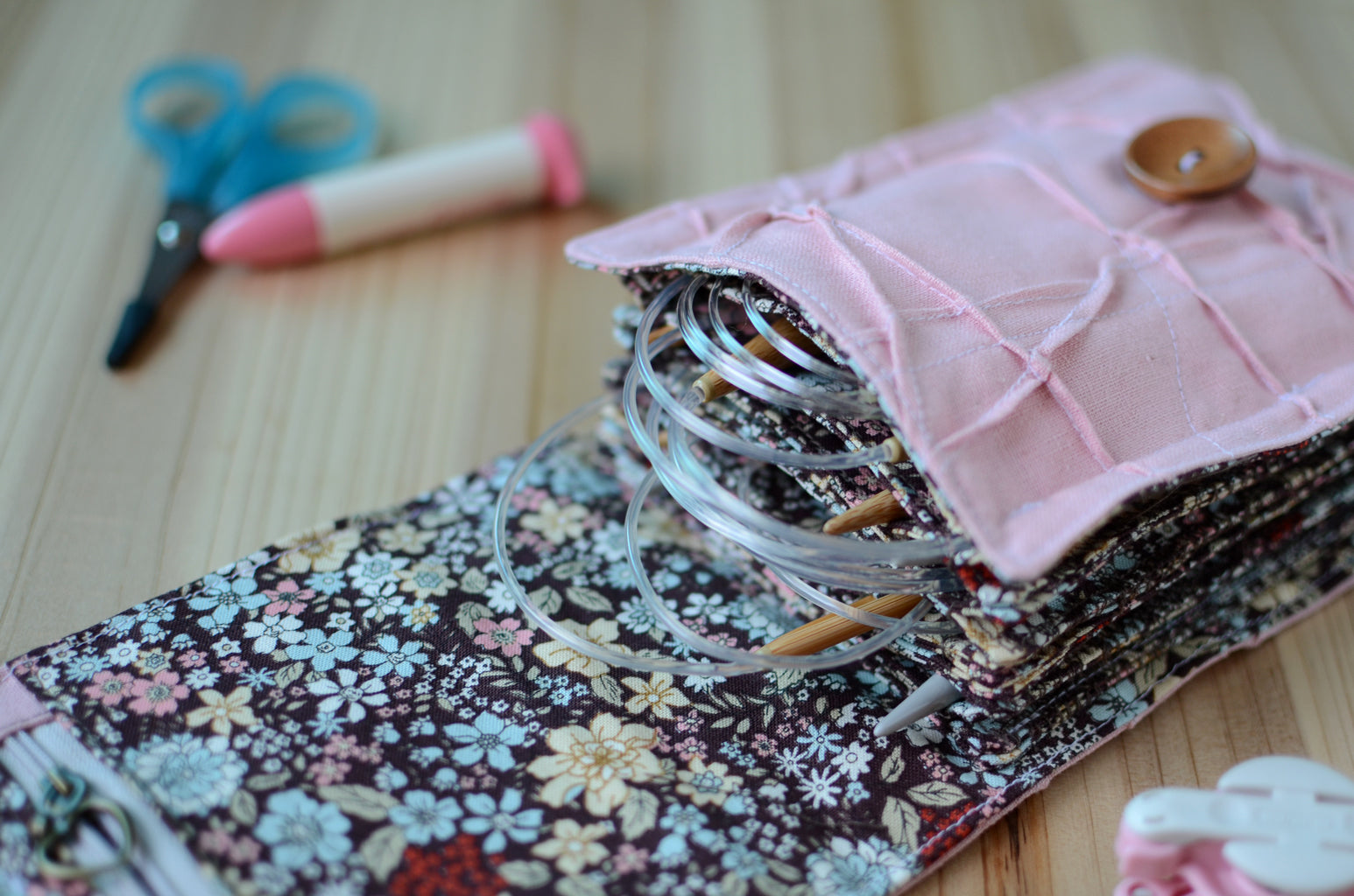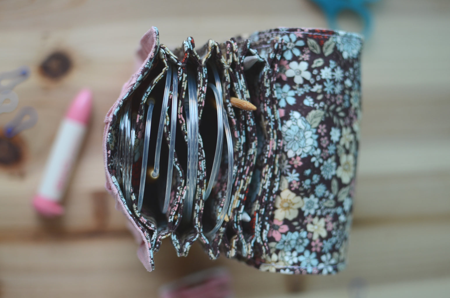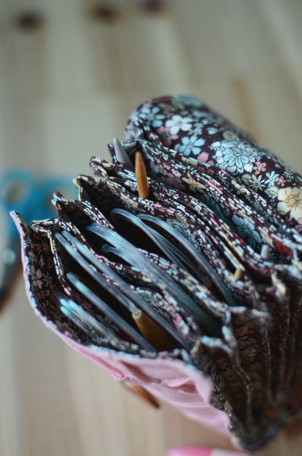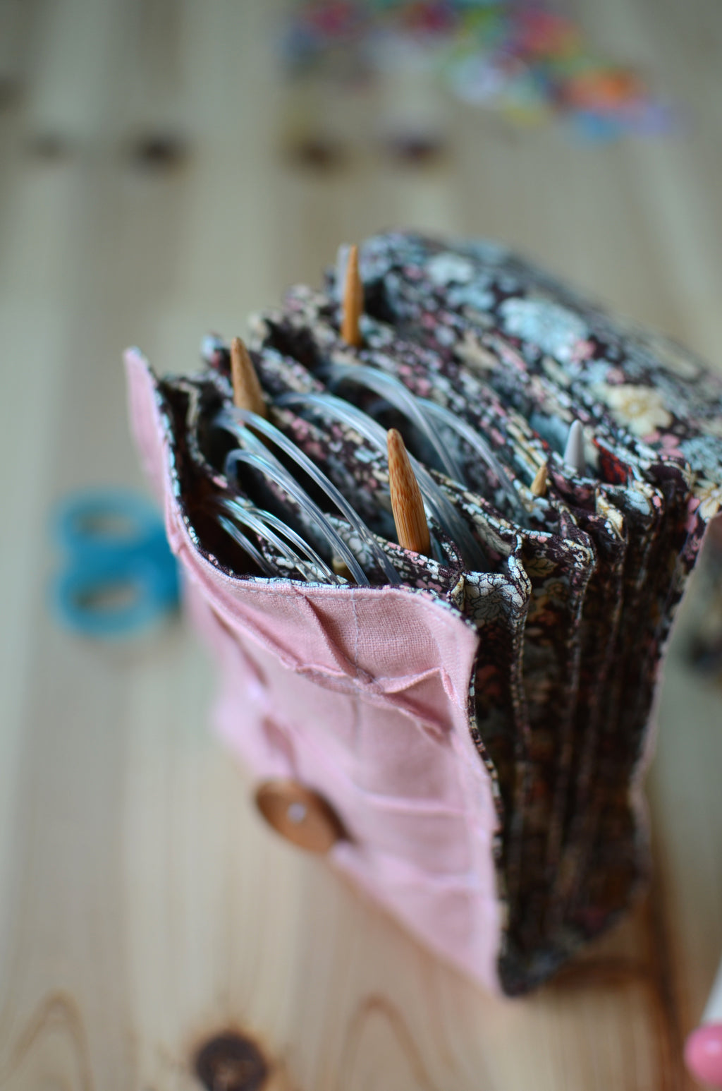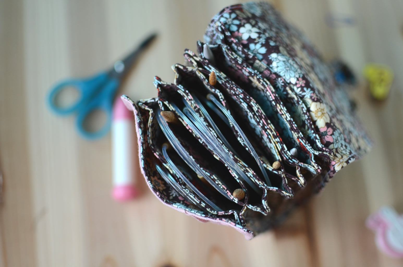 Circular Needle holder featuring lots of pockets! A perfect needle case for knitters who have lots of circular needle sets. Such a unique gift for those who love knitting.
