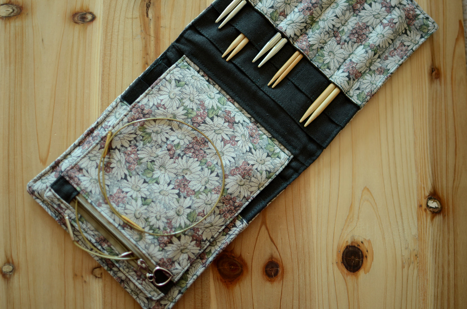 Created with natural linen in gorgeous floral print this interchangeable needle holder would make a precious, unique, and collectible addition to your knitting and crochet dream basket. As compact as your wallet the knitting needle organizer effortlessly houses many different sizes of needle sets, stitch markers, progress keepers, and even small scissors.