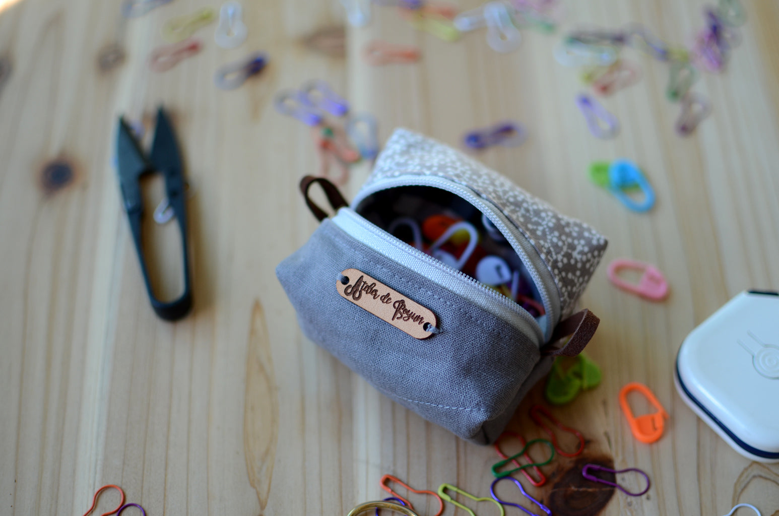 This One-of-A-Kind mini notion box would make a precious, unique, and collectible addition to your knitting and crochet dream basket. Created with top quality natural linen with matching festive cotton fabric it carries knitting notions such as stitch markers, progress keepers, small scissors and a tape measure so beautifully! You would love the way this adorable box sits on your project table, not to mention it would make an awesome gift for any knitters!