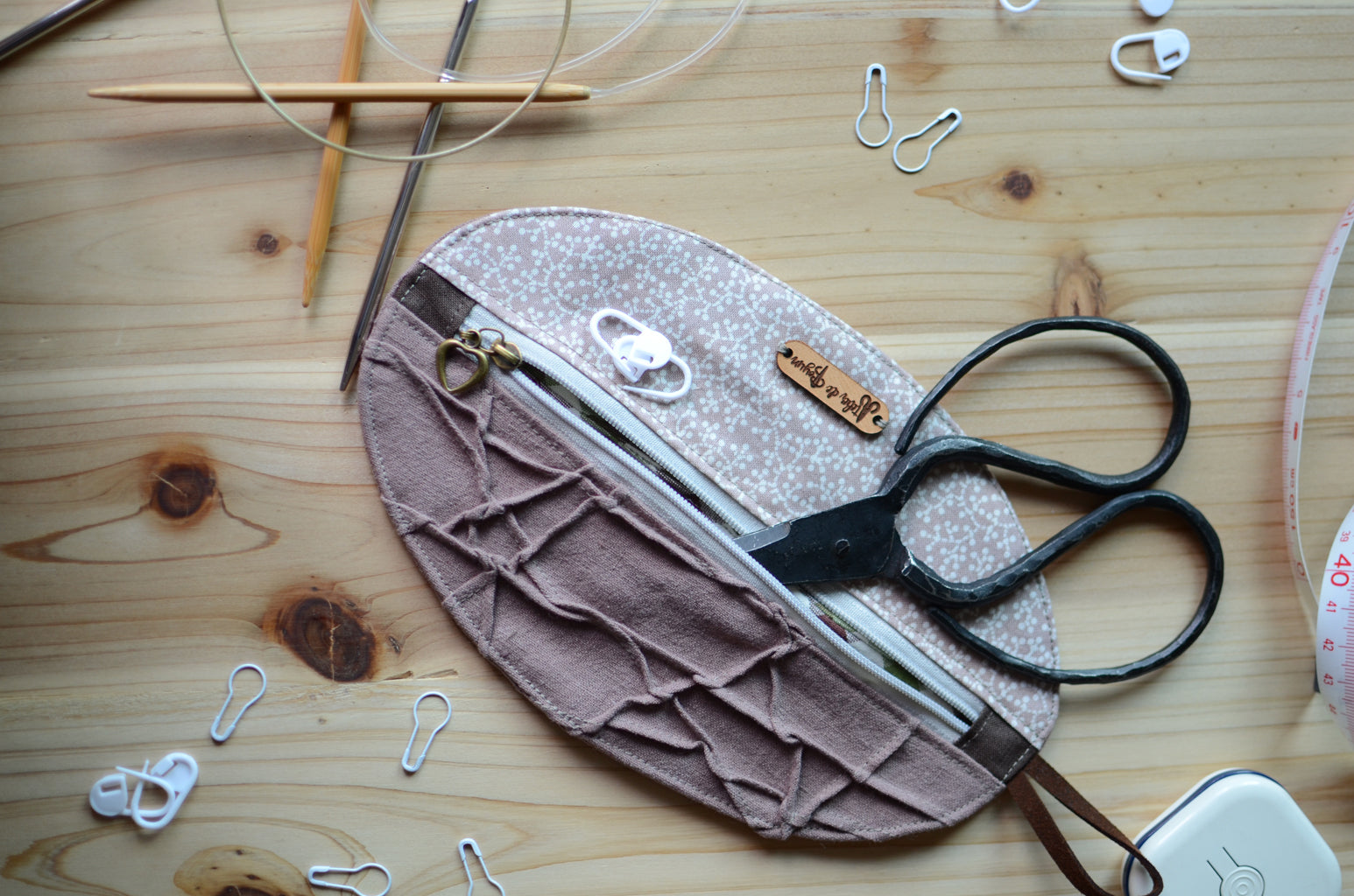 This One-of-A-Kind notion pouch would make a precious, unique, and collectible addition to your knitting and crochet dream basket. Created with top quality natural linen it beautifully carries knitting notions such as stitch markers, progress keepers, small scissors and a tape measure.