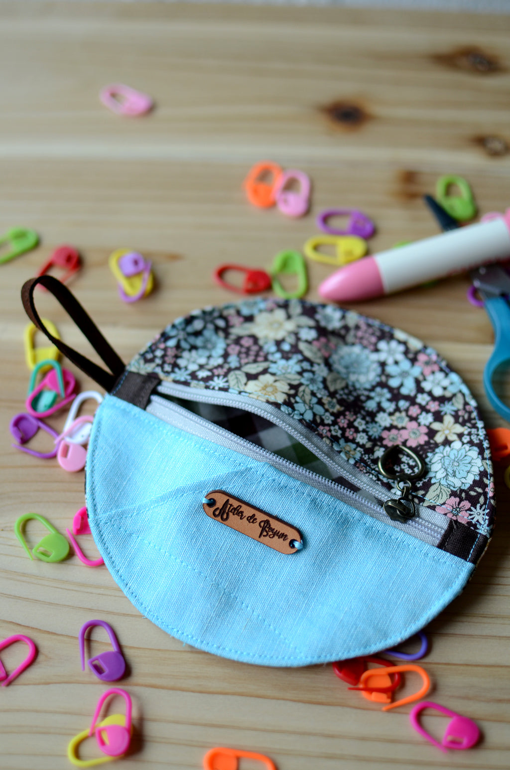 This One-of-A-Kind notion pouch would make a precious, unique, and collectible addition to your knitting and crochet dream basket. Created with top quality natural linen with matching festive cotton fabric it beautifully carries knitting notions such as stitch markers, progress keepers, small scissors and a tape measure. (Little Tips for non-knitters: this little zipper pouch can handle anything. Your coins, credit cards, earphones, little toiletries!)