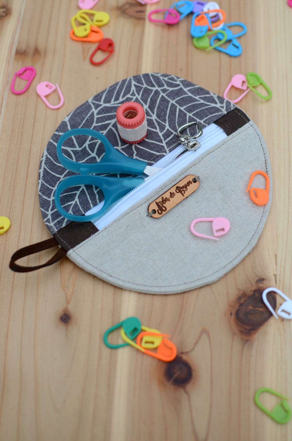 This One-of-A-Kind notion pouch would make a precious, unique, and collectible addition to your knitting and crochet dream basket. Created with top quality natural linen with matching festive cotton fabric it beautifully carries knitting notions such as stitch markers, progress keepers, small scissors and a tape measure. (Little Tips for non-knitters: this little zipper pouch can handle anything. Your coins, credit cards, earphones, little toiletries!)