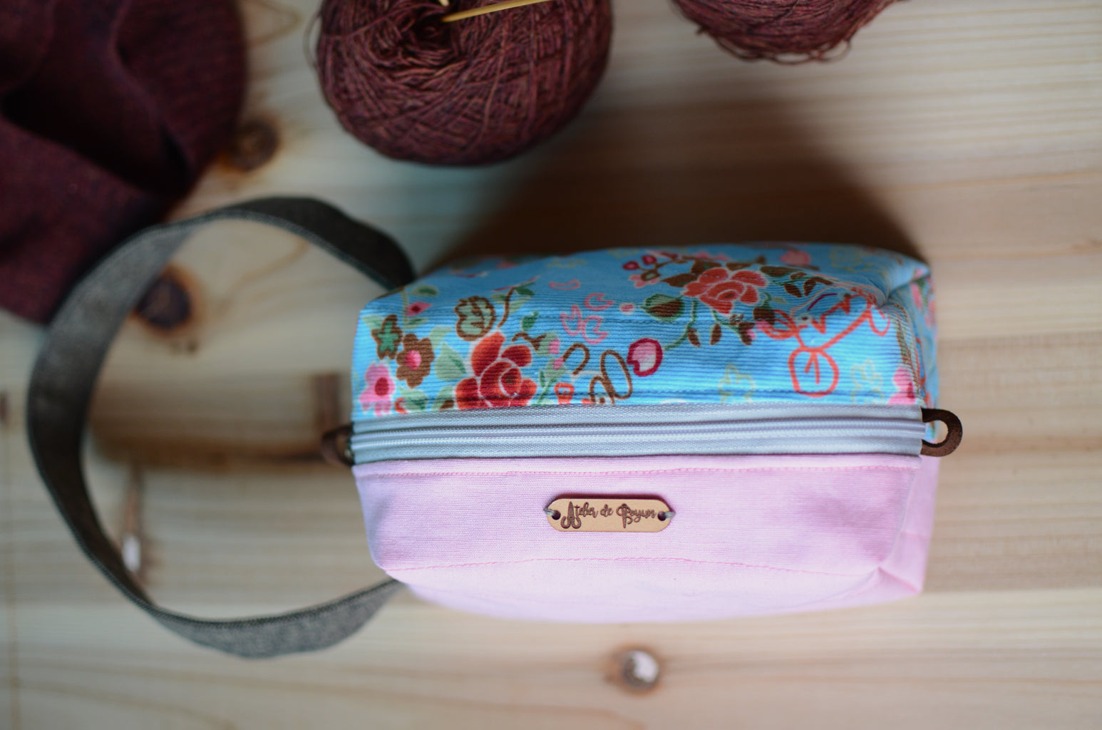 Small project bag for easy commuting/ light pink with festive floral