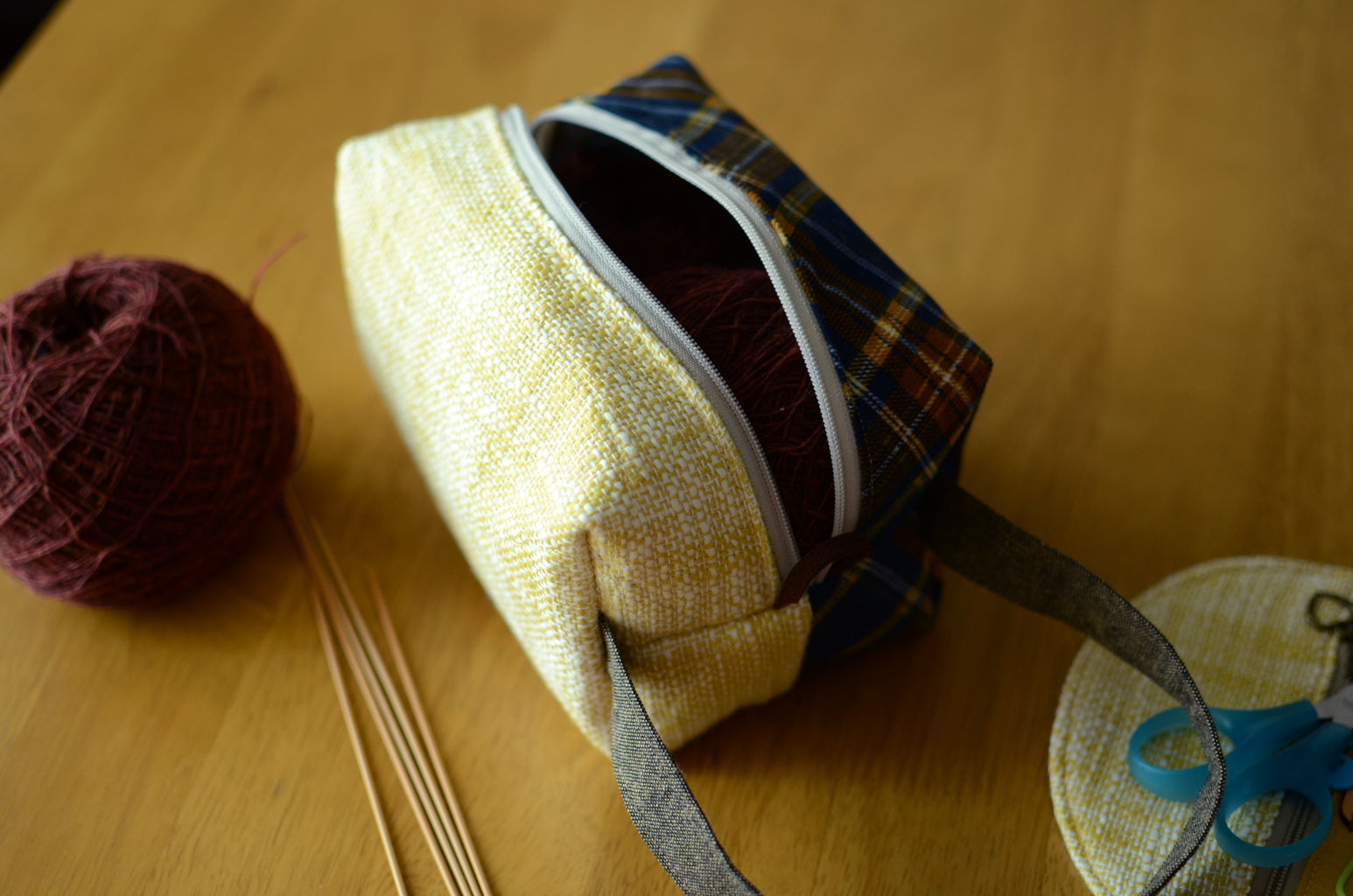 This One-of-A-Kind small project bag would make a practical, unique, and must-have addition to your knitting and crochet dream basket. Created with top quality natural woven fabric with matching festive corduroy fabric it carries a small knitting or crochet project so beautifully! You would love the way this adorable box easily fits in your daily bag, not to mention it would make an awesome gift for any knitters and crochet lovers!