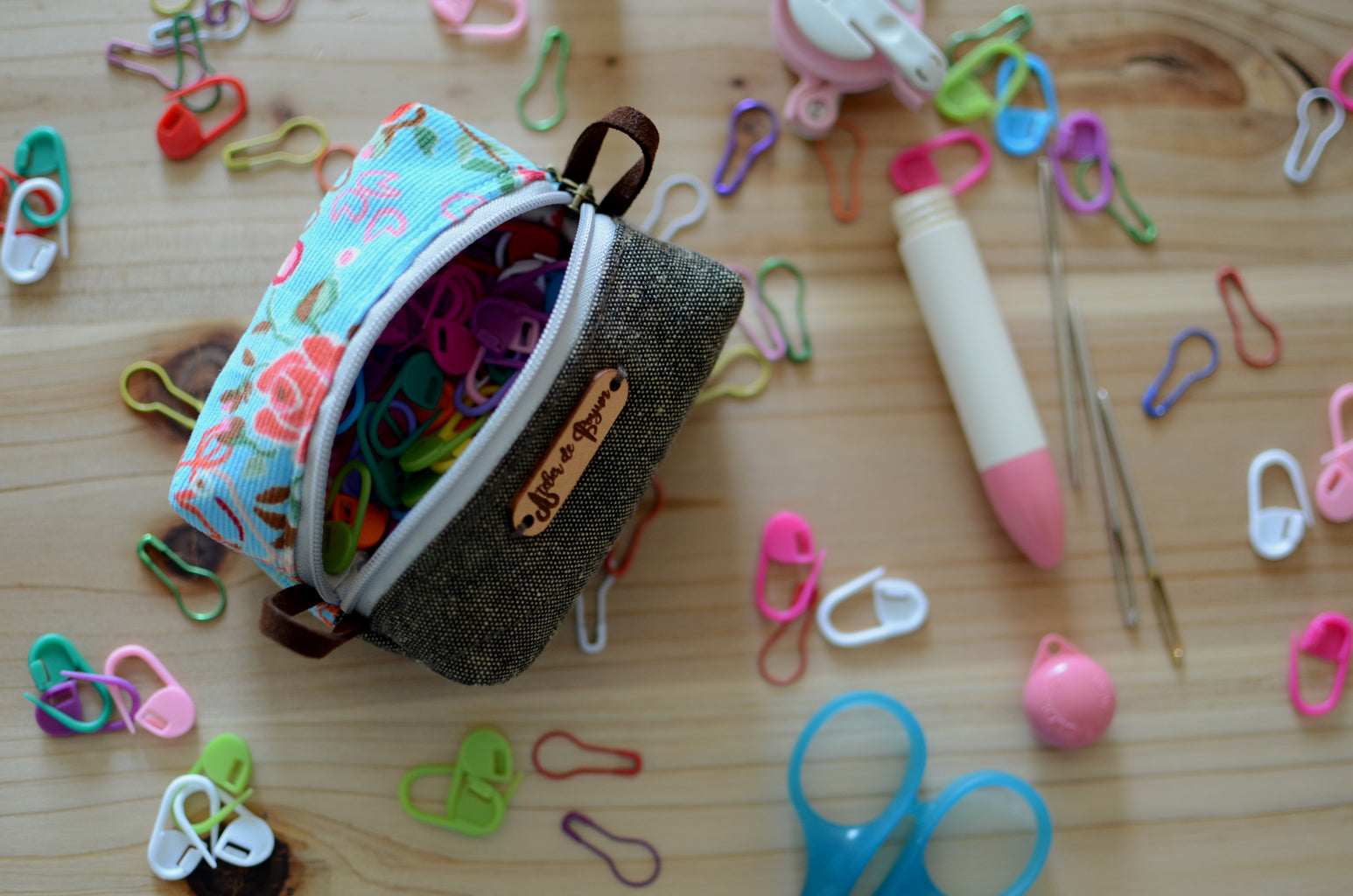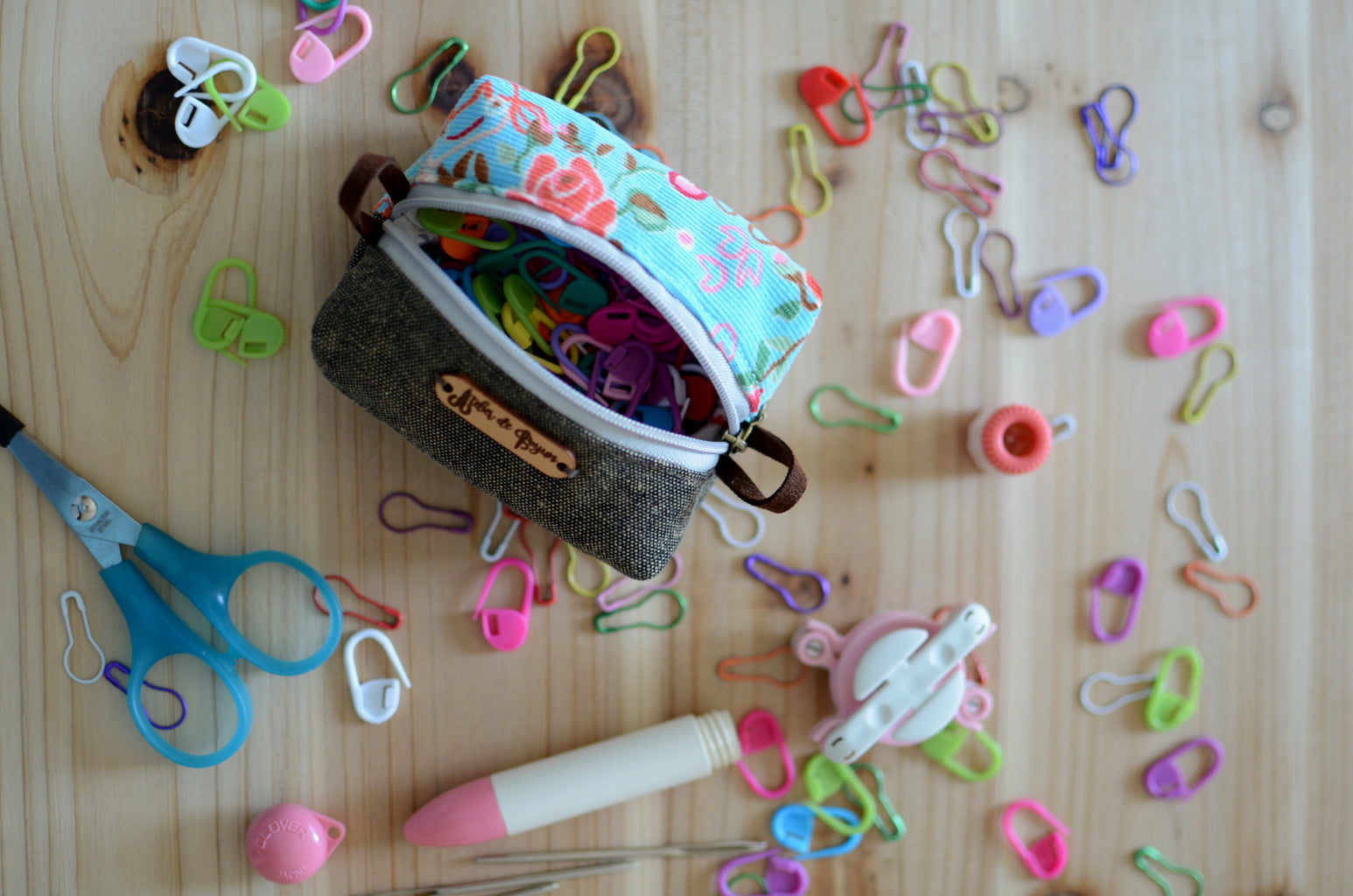 Stitch marker holder/ notion mini box pouch with zipper closure