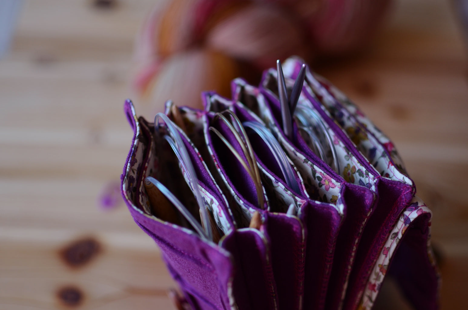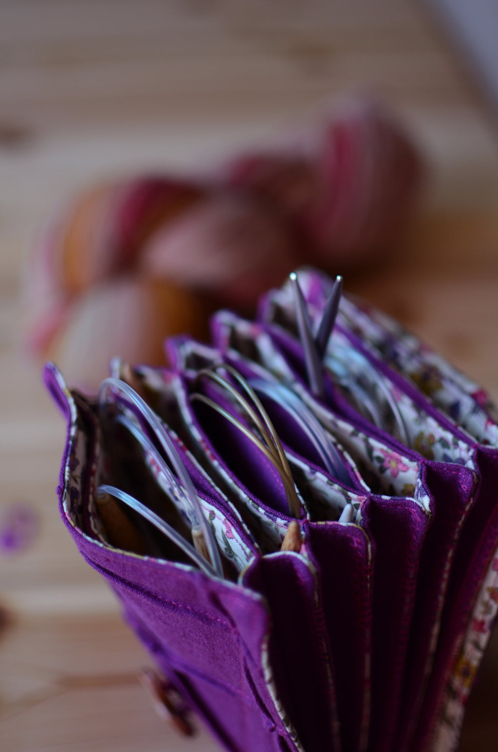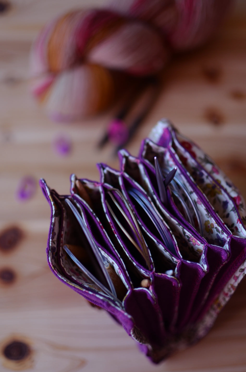 Circular Needle holder featuring lots of pockets! A perfect needle case for knitters who have lots of circular needle sets. Such a unique gift for those who love knitting.